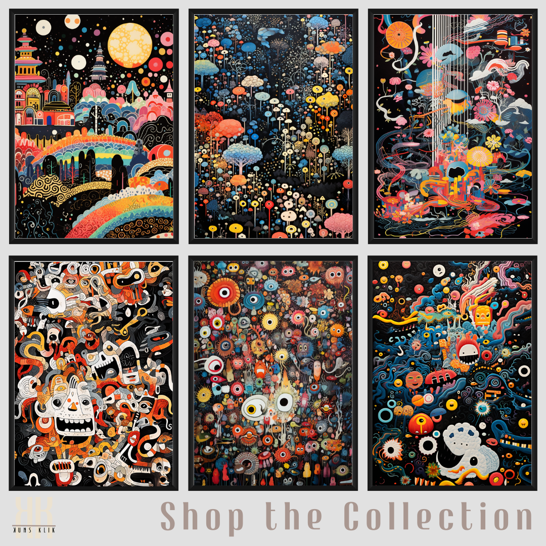 This collection is perfect for those who appreciate art that goes beyond the conventional, who seek to adorn their spaces with works that are conversation starters and thought-provokers. Whether displayed in a modern living room, a creative office space, or a cozy reading nook, these prints add a touch of the extraordinary to any environment.